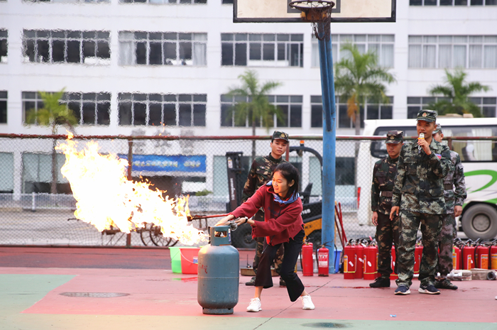消防官兵進行滅(miè)火器使用演示