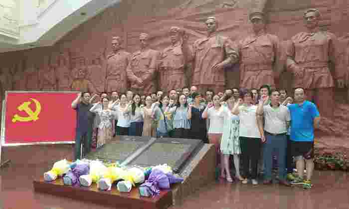 “我宣誓,我誌願加(jiā)入中國共產黨,擁護黨的綱領,遵守黨的章程,履行黨員義務,執(zhí)行黨的決定,嚴守黨的紀律,保守黨的秘密,對黨忠誠,積極工作,為共產主義奮(fèn)鬥終身,隨時準備為黨和人民犧牲(shēng)一切,永不叛黨!”黨員同誌們佩(pèi)戴黨員徽章,麵對著(zhe)鮮紅的黨旗莊嚴肅立(lì),在紀念館內重溫(wēn)入黨誓詞。