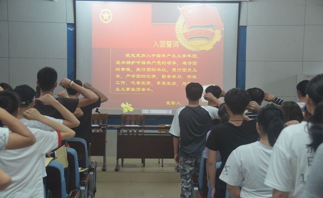 6月(yuè)7日晚,我院2018年第一期(qī)新團員入團宣誓儀式在階梯教室隆重舉行,參加會議會議的有(yǒu)團委農全猛老師、包昌平老師,以及來自17北京現代營銷班(bān)的優秀學生代表陸昌芬同學。