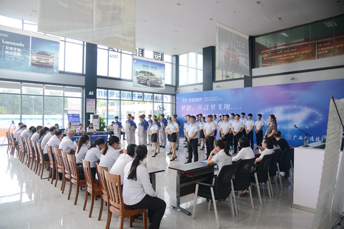 北京現代汽車有限公司廣西區域經理石榮,學院副院長關菲明,以及學院汽車工程係、信息商務係係部負責人等出席活動現場。