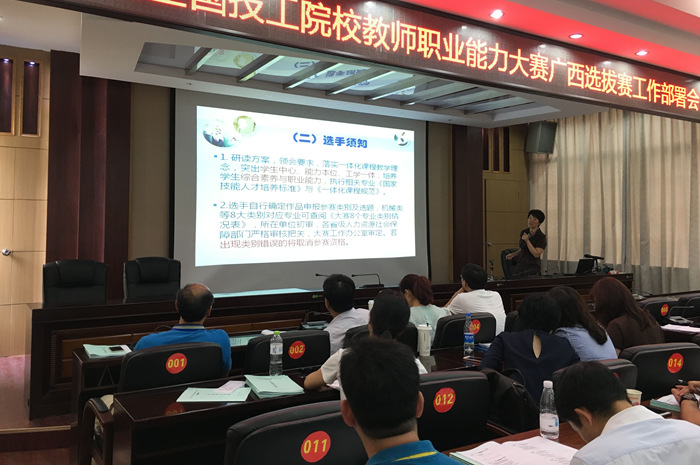 5月17日下午,第一屆全國技工院校教師職業能力大賽廣西選(xuǎn)拔(bá)賽(sài)工作部署會在我院信息中心四樓會議室順利召開。