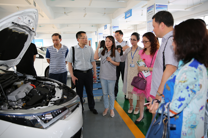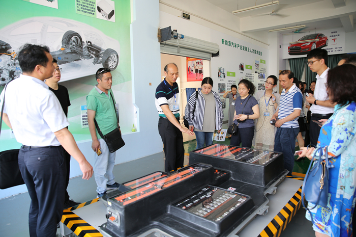 交流培(péi)訓班(bān)成員參觀我院新能源汽車實訓設備