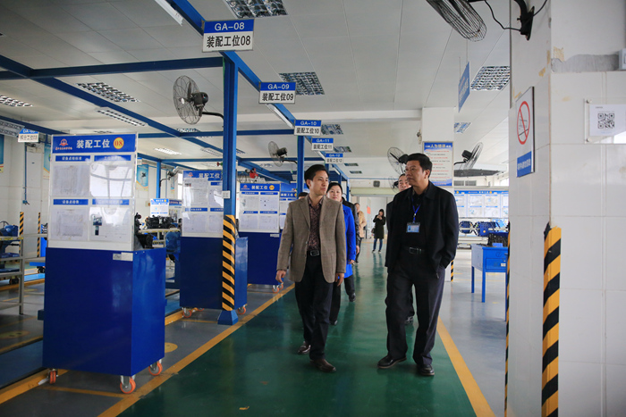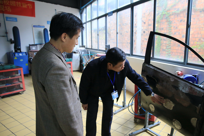 黃創優局長一行(háng)實地參觀了我院動車實訓室、大師工作室(shì)、汽車4S實訓中心、汽車性能與排放測試(shì)實驗中心、玉柴發動機實訓中心等教學實訓場所,深入細致地了解我院的教育辦學、師資力量、基礎設施建設、畢業生就業等情況。