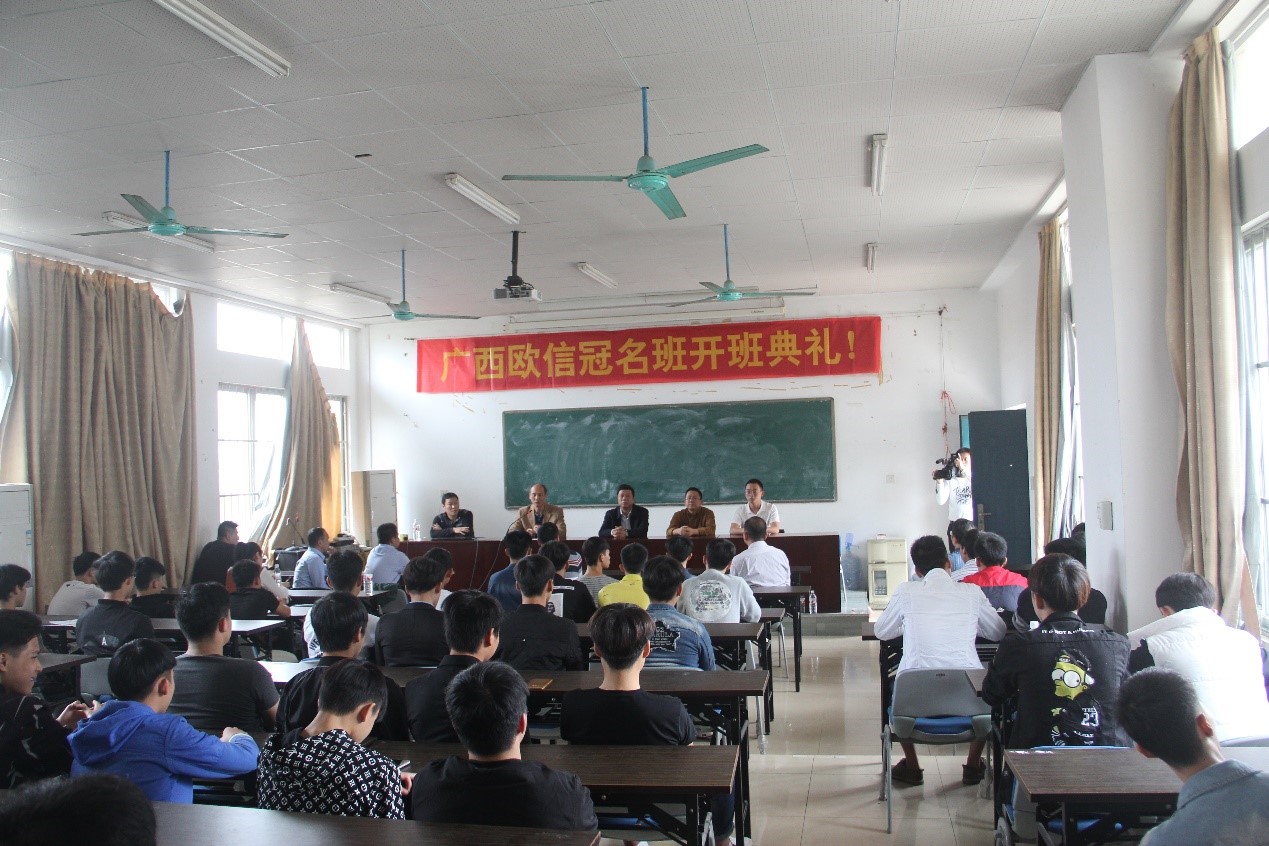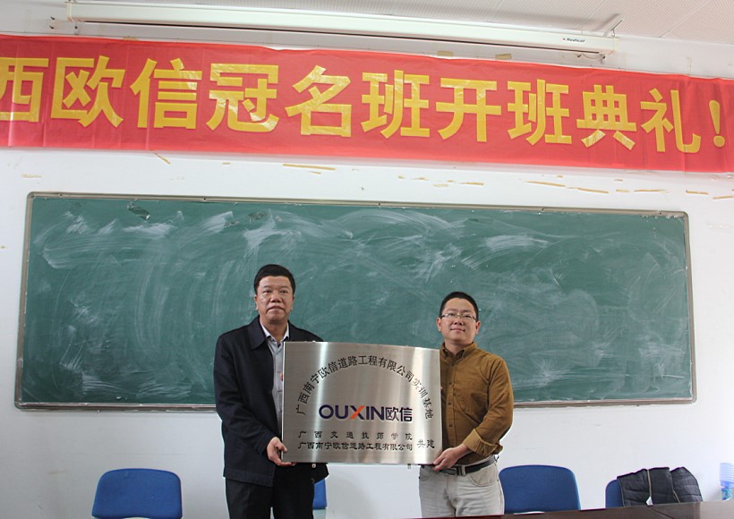 為加強企業與學院(yuàn)之間的溝通、交流,增加學(xué)生對企業的了解,2017年(nián)11月28日下午,我院在長堽校區辦公(gōng)樓多媒體教室舉行(háng)廣西“歐(ōu)信(xìn)”冠名班開班典禮和揭牌儀式。學(xué)院院長鍾修仁、副院長關飛明,廣西南寧歐信道路工程有限公司總經理黃敏、廣西煒盈建(jiàn)築工程有限公司總經理李孝(xiào)平等領導出席了典禮和儀式,典禮由機電(diàn)係主任周茂傑主持。