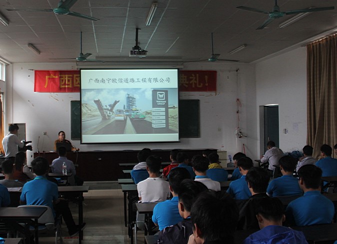 開班揭牌儀式結束後,廣西南寧歐信道路(lù)工程有限公司總經理黃敏為歐信機械班全體學生上了生動的第一課,向大家介紹了(le)歐信(xìn)的發(fā)展過程和企業(yè)文化。作為同學們的學長(zhǎng),黃敏總經理(lǐ)以其自身經曆鼓勵大家要有夢想,要有抱(bào)負,要通過不斷(duàn)努力和奮鬥來實現(xiàn)自己的人生價值(zhí)。