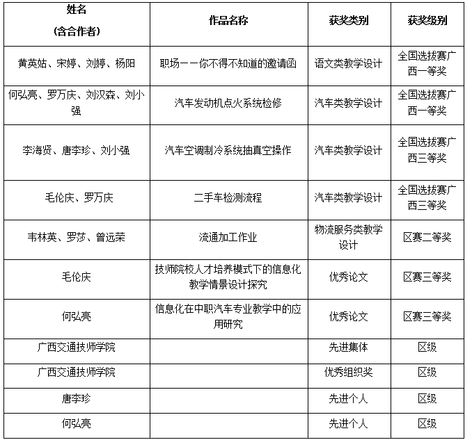 我(wǒ)院在2017年創新杯廣西中職教師信息(xī)化教學大賽中喜(xǐ)獲佳(jiā)績