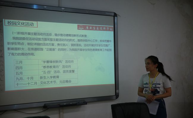 首先由院長助理樊海林同誌介(jiè)紹了學院的基本發(fā)展情況,他希望各行業和各級團組織能(néng)對(duì)我院團建工作多進行交流和指導,並希望本次調研檢(jiǎn)查能順利(lì)圓滿完成。隨後,由學生工作科副科(kē)長、團委書記李薑春同誌從團建、社團和德育工作等(děng)幾個方麵向檢查組匯(huì)報了我院近幾年(nián)的工作成果。在檢查過程中,農副局長對我院團委的工作給出了(le)高度的肯(kěn)定,他希望今後的工作不單停留在(zài)表麵,要突出精品和亮點,充分利用各種資源,不斷(duàn)完善和提高團組織的各項工作。
