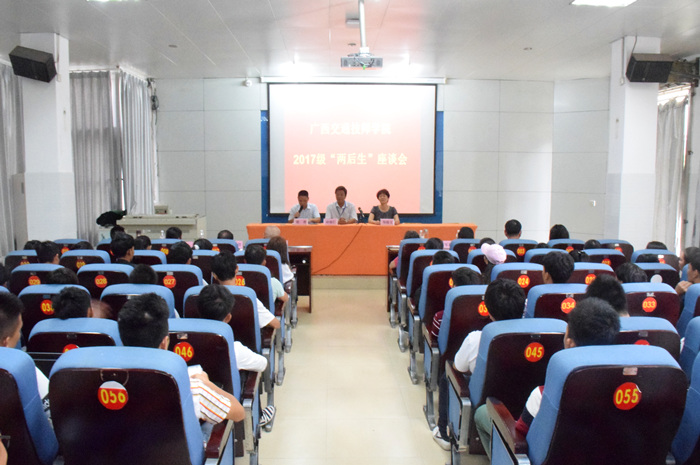 座談會首先由2017級"兩後生"班班主任蘇啟棠老師對班級情(qíng)況做了詳細匯報。我院今年招收“兩後(hòu)生”78名,其中男生64名,女生14名,分別來自樂業、那坡(pō)、西林、靖西縣等4個縣(xiàn)份。現就讀汽修專業的有52人,幼教專業15人(13名女生、2名男生),烹飪類專業的有8人(rén)(西式麵點7人,有1名女生),工程機械專業(yè)3人。
