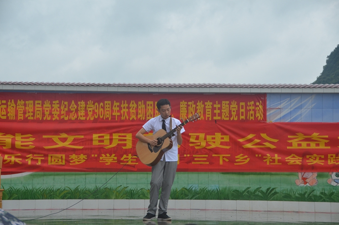 為深入學(xué)習宣傳貫徹習(xí)近平總書記關於青年成長成才的(de)一係列重要論述,引領和幫助廣大青年學生在社會實踐中受教育、長才幹、作貢(gòng)獻,以青春建(jiàn)功的實際行動,為全麵建成小康(kāng)社會貢獻青春力量,以優(yōu)異成績喜迎黨的十九大勝利召開,在學院團委的組織下,我院“樂行圓夢”誌願者(zhě)服務隊(duì)於6月30日至7月2日赴(fù)廣西壯族自治區道路運(yùn)輸管理局第一(yī)書(shū)記掛(guà)職點國家級貧困縣羅城仫(mù)佬族自治縣小長安鎮龍騰村開展2017年廣西大中專學生誌願者暑期文化科技(jì)衛(wèi)生“三下鄉”社會實踐(jiàn)活動。此次“三下鄉”我院誌願者服務隊以“交通安(ān)全知識進農(nóng)村”為工作目(mù)的,為(wéi)留守兒童及少數民族群眾進行交通安全知識普及,助力精準扶貧。