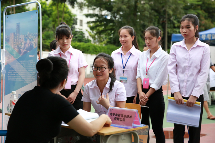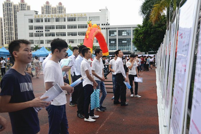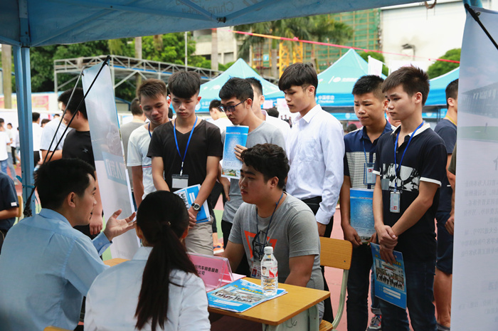 學生們通(tōng)過統一製作好(hǎo)的招聘單位信息展架快速了解企業需求