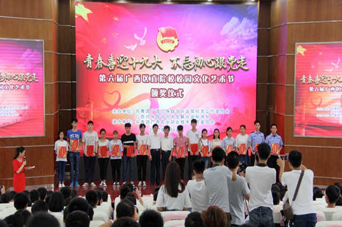 6月18日上午9:00,“青春喜迎十九大 不忘初心跟黨走”第六屆廣西區(qū)直(zhí)院校校園(yuán)文化藝術節閉(bì)幕式在廣西農業職(zhí)業技術學院報告廳舉行。閉幕式現場播放(fàng)了本(běn)次文化藝術節精彩回顧短(duǎn)片,進行了文化(huà)藝術節頒獎(jiǎng)儀(yí)式。