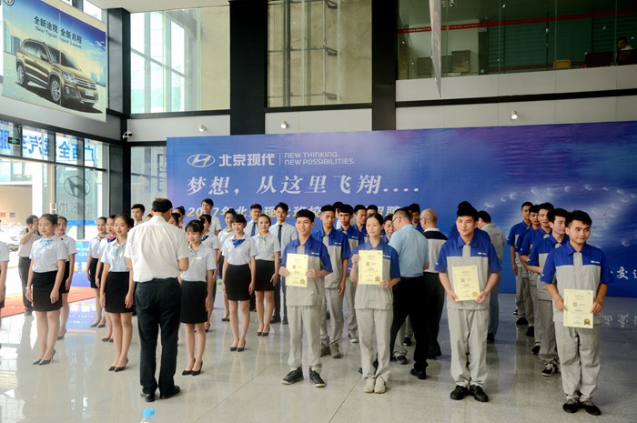 6月(yuè)7日,我院2017年北京現代班(bān)校園專場招聘會在學院汽車(chē)4S展廳拉開帷幕,學院2016級北京現代機修班和服務營銷班共39名(míng)畢業生參加了此次招聘會,並且全都(dōu)應聘成功,順利簽訂實習崗位。