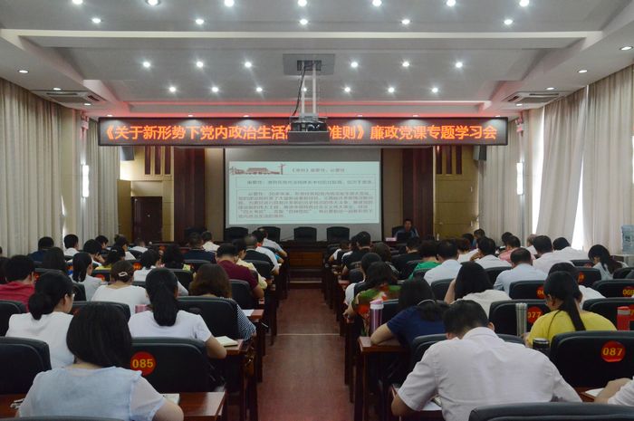 5月26日下午,我院在信息中心樓四樓會議室召開了《關於新形勢下黨內(nèi)政治生(shēng)活的若幹準則》廉政黨課(kè)專題學習會。院領導班子成員、全體中層幹部、全體黨員參加了會議。會議由院長鍾修仁授課。