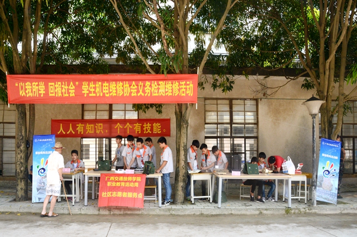 5月11日下(xià)午(wǔ),我院機電維修協(xié)會在學院二區(qū)崗亭旁(páng)開展“進社區、進社會”誌願服務活動(dòng),義務為學院教職工們檢測家用電器的故障並進行維修。