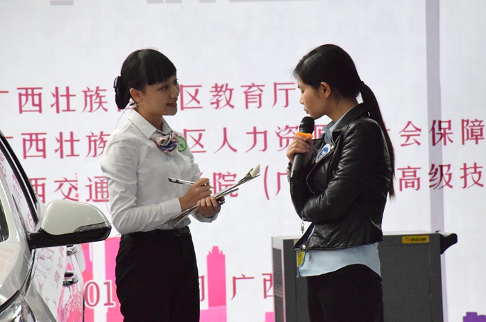 據悉,此次比賽共有來自全區32所學校的34支隊伍參加比賽。比賽共設置三個(gè)子賽項,分別是(shì)“汽車(chē)營銷基本能力測試”、“服務接待(dài)綜合能力模擬”、“配件管理綜(zōng)合能力模擬”。比(bǐ)賽過程中,我院參賽選手董麗芳、楊心麗精心準備、沉著應戰,展現了規範(fàn)的操作流程、良好的服務技能和現場隨機應變的能力,贏得了評委和觀眾的一致好評,為學院爭得了(le)榮(róng)譽(yù)。