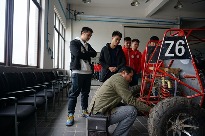 汽車工程係在院領導的大力支持下,於2016年11月組建(jiàn)了巴(bā)哈大賽指導老師團隊(duì),為了做(zuò)好大(dà)賽的籌備工作,指導(dǎo)教師團隊分工合作,設(shè)立了車架組,底盤組和動力傳動組,各小組將以明確的工作任務(wù)分別(bié)對車輛各部分進行設計製造,征(zhēng)戰2017年第三屆巴哈大賽。