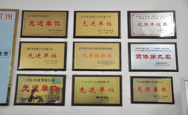 榮獲南寧市駕培機構教練員技能競賽理論教員技能競賽第一名、業(yè)務員技能競賽第一名、操作(zuò)教練員(yuán)技能競賽第三名和團體第一(yī)名