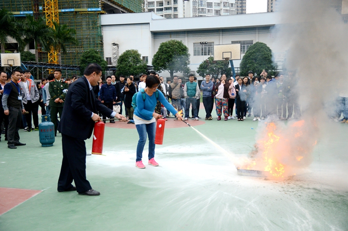 演練前,南寧市興寧區消防大隊的官兵對全校師生員工進行了消防安全理論知識培訓,結合視頻(pín),詳細講(jiǎng)解了如何報119火警、火災的預防、火場(chǎng)自救及逃生方(fāng)法等,並在現場演(yǎn)示了滅火(huǒ)器的操作方法和要領。隨後,師生們親自體驗了現場(chǎng)滅火的過程,在消防官兵的指導(dǎo)下按照正確的方式和步驟迅速(sù)滅火。
