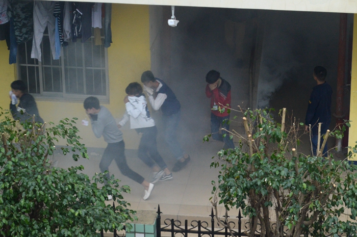 學(xué)生們有序地進(jìn)行消(xiāo)防(fáng)疏散演練