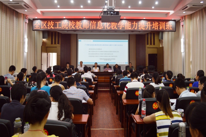 7月12日,由廣西壯族自治區人力資源和社會保障廳技工教研室主辦,我院(yuàn)承辦的“全區技工院校教師信(xìn)息化教(jiāo)學能力提升培(péi)訓班”在我院順利(lì)開班。培訓班邀請到廣西職業院校信息化教學大(dà)賽專家組(zǔ)組長、廣西職業(yè)院校信息化教學大賽評審委員會評判長胡華進(jìn)帶領(lǐng)的廣西職業院(yuàn)校教師信息化教學能力提升萬裏(lǐ)行活動專家團(tuán)隊,以及北京超星數圖信息技術有限公司(sī)課程服務(wù)研究院副院長錢會博擔任授課教(jiāo)師。