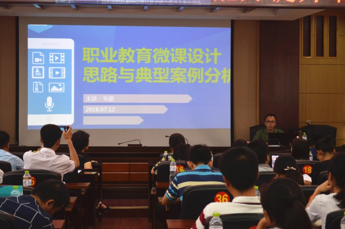 培訓(xùn)期間,廣西(xī)職業院校信息化教學大賽專(zhuān)家組組長胡華進(jìn)、廣西職業技術學院副教授敖茂堯(yáo)、廣(guǎng)西機電職業技術學院(yuàn)韋(wéi)波等幾位專家老(lǎo)師對培訓學員進行理論培訓,他們分別從“教育信息化發展概述”、“基(jī)於信息化技術與課程深度融合的教學案(àn)例分析”、“職業教育微課設計思(sī)路(lù)與典型案例分析”和“多媒體教學課件與課程深(shēn)度融合教學案例剖析”等方麵進行了詳盡的分析講解。我院淩雪瑩、梁華、劉(liú)婷等老師在現場與大家分享了參加國賽的經驗,得到現場領導和老師的認可和讚(zàn)揚。此外,我院信息與宣傳(chuán)中心(xīn)副主任施偉在培訓會上介紹了學院運用信息化管理手段開展學生管理與學生校(xiào)外實習管理的經驗,受到專家組的肯(kěn)定。