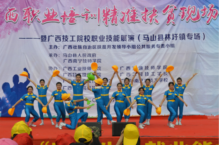 6月27日,一場別開生麵的廣(guǎng)西技工(gōng)院校職業技能展演在馬山縣(xiàn)林圩鎮拉開帷幕。此次(cì)展演是由廣西壯族自治區扶貧開發領導小組公共(gòng)服務專責小組主辦,由馬山縣人民政府和廣西南寧技師學院承辦(bàn),廣西工業技師學院及我(wǒ)院等多個院校聯合協辦。展演的最終目的是(shì)為推進(jìn)廣西職業培訓(xùn)精準(zhǔn)扶貧,動員組織貧困村(cūn)建(jiàn)檔立卡(kǎ)貧困家庭中未繼續升學的初中、高(gāo)中畢業生(簡稱“兩(liǎng)後生”)參加職業技能培訓,實現技能就業,帶動家(jiā)庭脫貧(pín)。