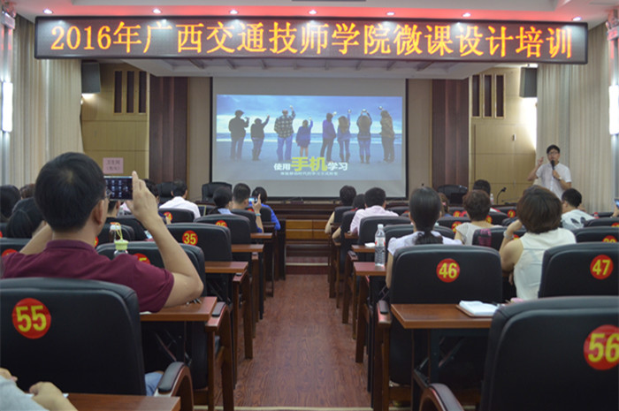 為不斷提高我院教師教育技(jì)術應用能力和信息化水平,促進信息技術在教育教學中的廣泛應用,6月14-15日,由我院教務(wù)與科研(yán)處協同信息與商務係組織的2016年(nián)91.com技師(shī)學院微課設計培訓在信息中心四樓會議室舉行,廣西技工教育研究室副調研員曾(céng)文、我院院長助理鄭超文出席了(le)培訓會。此次培訓由北京超星數圖信息技術有限公司課程服務研究院副院長錢會博主講,我院汽車係、信息與商務係及長崗校區共54名教師參加培訓(xùn)。