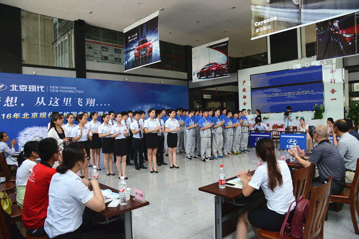 2015級北京現(xiàn)代汽車營銷(xiāo)專(zhuān)業的學生展示職業禮儀