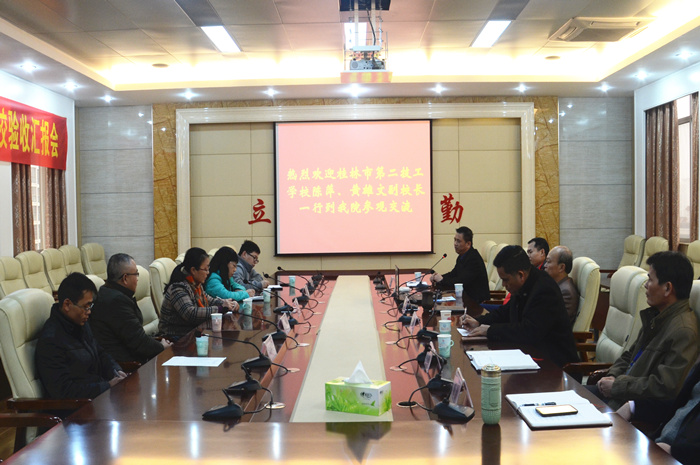 12月(yuè)29日,桂林市第二技工學校陳萍副校長一行5人到(dào)我院(yuàn)參(cān)觀交流。學院黨委書記羅華、副院長陸天(tiān)雲以及(jí)相關部門負責人熱情接待(dài)了來訪的一(yī)行人。