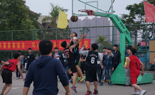 本次籃球賽曆時2個月60多天(tiān),每個參(cān)賽隊員都積(jī)極(jí)拚搏,配合默契,雖(suī)然比賽中也有意外跌倒的發(fā)生,可是每個人並沒有(yǒu)因此影響了比賽情緒,隊員之(zhī)間拍拍肩膀相互安慰,接著再來。一場場緊張激烈、扣人心弦的角逐(zhú),每(měi)天不斷(duàn)精彩(cǎi)上演,場外的啦(lā)啦隊同學也饒有興致地觀看著比賽,為參與比賽的同學打氣、喝彩,與場內(nèi)的氣氛融為一體(tǐ)!