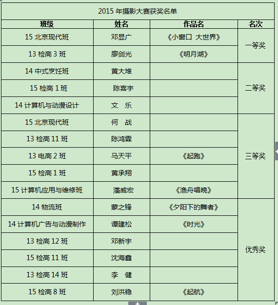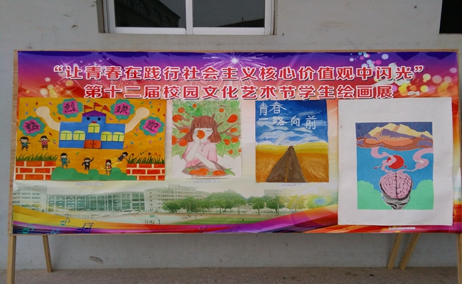 2015年11月,我院(yuàn)開展(zhǎn)了“讓(ràng)青春在踐行社會主義核心價值觀中(zhōng)閃光”學生書畫攝影比賽並進行展出。比賽在全院進行(háng),共收得學生書法作品118幅,繪畫作品128幅,攝(shè)影作品140幅;並分別評(píng)比出了書法比賽(sài)一等獎兩名,二等(děng)獎三名,三等獎五名,優(yōu)秀獎(jiǎng)五名(míng)。繪畫比賽一等獎兩(liǎng)名,二等獎(jiǎng)三(sān)名,三等級五名,優秀獎五名。攝影比賽(sài)一等獎兩名,二等獎三名,三等獎五名(míng),優秀獎六名。
