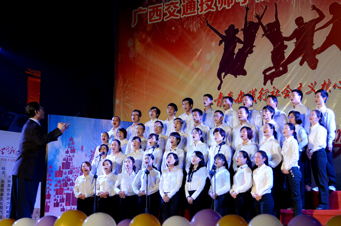 長堽校區(廣西公路(lù)技工(gōng)學校(xiào))教師合唱《愛我中華》
