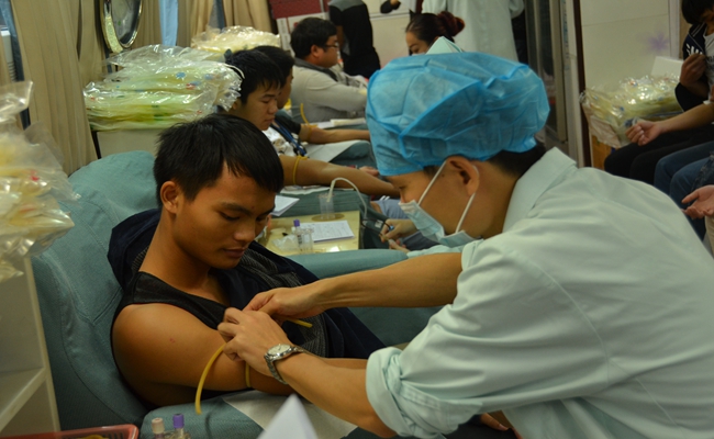 同學(xué)們積(jī)極參與愛心獻血