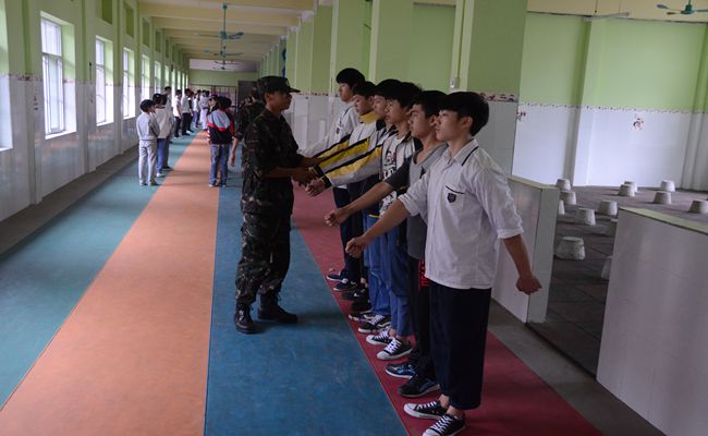 我院護校隊成員在(zài)訓(xùn)練星星學校的國旗手