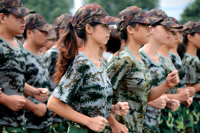 邕武校區、高(gāo)峰校區2015級新生(shēng)軍訓會操表演於9月11日上午舉行,2600多名新生(shēng)分別進行了列隊隊形、停(tíng)止間轉法、齊步走等項目。