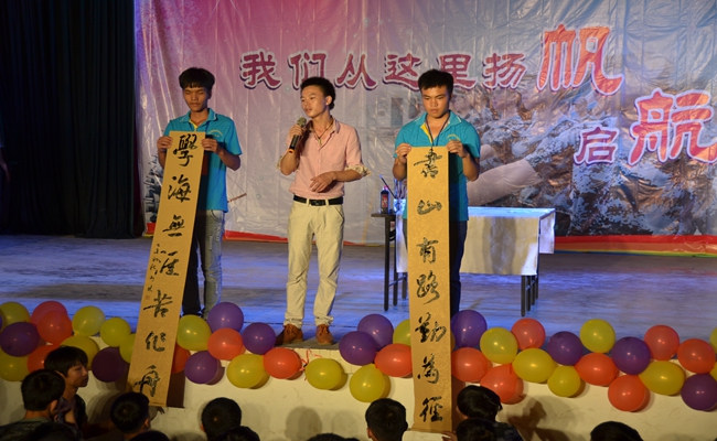 晚會上,我院(yuàn)學生社團的同學們精心編排了節(jiē)目,教官代表們也帶來了精彩的演出(chū)。啦啦操、武術、街舞、舞蹈、現場書法、技巧表演等豐富多彩的文藝節目輪番上演,將(jiāng)晚會氣氛一次(cì)次推向高潮。教官帶來的武術表演和徒手劈磚,贏得了台下(xià)觀眾的陣陣(zhèn)掌聲;啦啦操的《大(dà)眼睛》和街舞協會帶來的精彩(cǎi)舞蹈《起源(yuán)》,掀起(qǐ)晚會的小高潮;教師代表謝少林老師(shī)帶(dài)來的現(xiàn)場書(shū)法,充分展現了多才多藝的教師風采。近一個半小時的演出(chū),精彩紛(fēn)呈,亮點不斷,為同學們呈現了一場視覺盛宴。