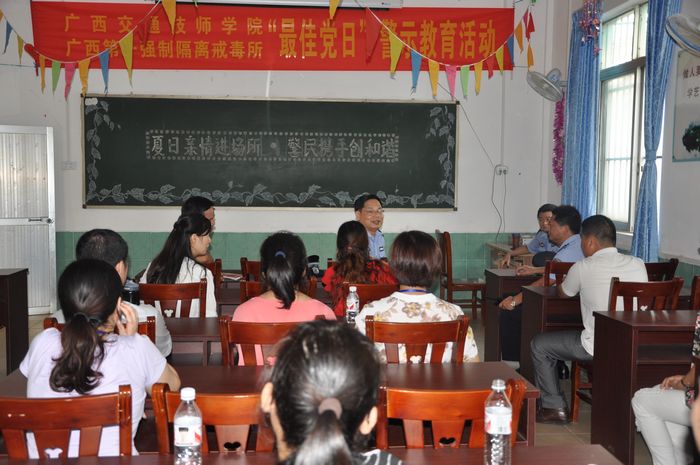 為加(jiā)深黨員幹部(bù)對毒(dú)品危(wēi)害社會的(de)感觀認識,強化思想防範,第三(sān)黨支部踐行“三嚴三實”。在副院長陸天雲的帶領(lǐng)下,黨支部28名黨員幹部於(yú)2015年(nián)6月30日前往(wǎng)廣西第一強製隔(gé)離戒毒所(以下簡稱戒毒所)開展黨員(yuán)警示教育活動。