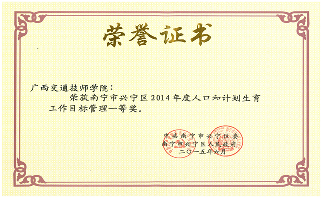 近日,我院被南(nán)寧(níng)市興寧區委(wěi)、區政府授予“南寧市興寧區2014年度人口和(hé)計劃生育工作目標管理一等獎(jiǎng)”榮譽稱號。