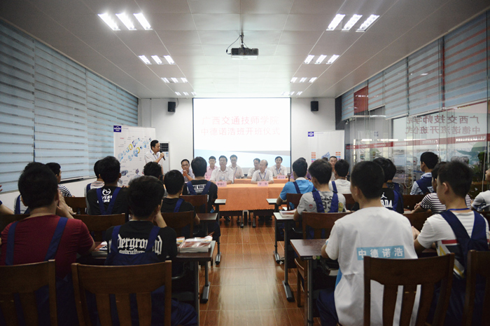 5月28日上午,我院在德能樓二樓(lóu)舉行“中德(dé)諾(nuò)浩”班開班儀(yí)式。學院鍾(zhōng)修仁院長,羅華書記,汽(qì)車係、招生就業處、學生工作處相關負責人出席,中德諾浩教師團隊、班主任和全體學員參加了儀式。
