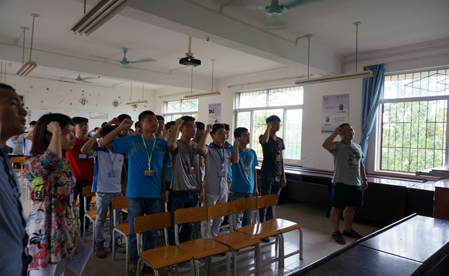 同學們在(zài)老師代領下進行(háng)成人宣(xuān)誓