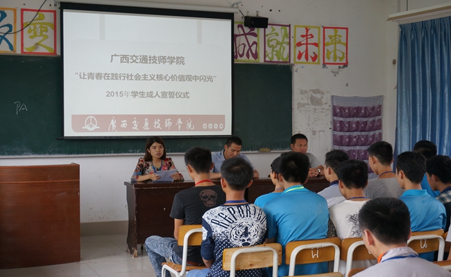 5月(yuè)27號(hào)下午,我院高峰校區100多名學生代表在“讓青春在踐行社會主義核心價值觀中閃光”2015年學生成人禮宣誓儀式上喊出了(le)自己十八歲成人誓言。