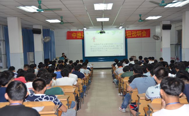 5月12日晚,學院階梯教室裏青春激昂、掌聲(shēng)振振,2015年第一期業餘團校開班典禮在這裏隆重舉行。參(cān)加此次開班儀式(shì)的人(rén)員有:院團委(wěi)書記李薑春(chūn)老師、團(tuán)委幹事(shì)楊霜老師、學工處年級主任李金成老師、汽車(chē)係李宣葙老(lǎo)師和學生代表(biǎo)13塗裝班的劉永(yǒng)祥同學,典禮儀式由團委(wěi)孫廣福老師主持。