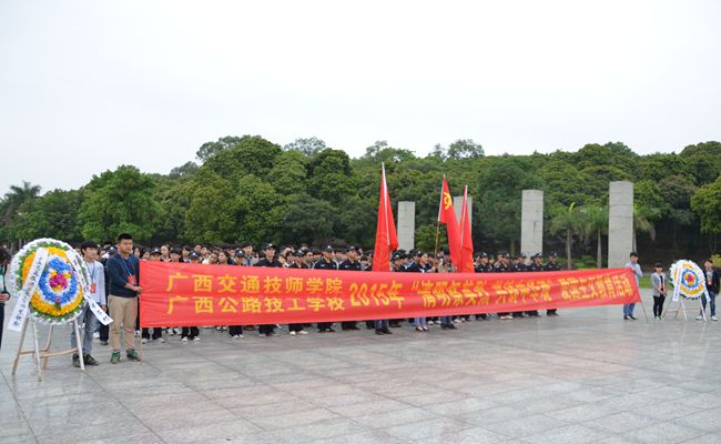 2015年是中國人民(mín)抗日戰爭暨世界反對法西斯戰爭勝(shèng)利70周年。為了悼念革(gé)命烈士,緬(miǎn)懷先烈的豐功(gōng)偉績,教育學生繼(jì)承革命(mìng)先(xiān)烈的光(guāng)榮傳統,4月10日(rì)下午,我院邕武校區、高峰校區和長堽校區(廣西公路技工學校)師生一行300多人(rén)懷著對烈士無比崇敬的心(xīn)情來(lái)到了廣西烈士陵園,開展了以“清明祭英烈 共鑄中華魂”為主題的清明節掃墓活動(dòng)。