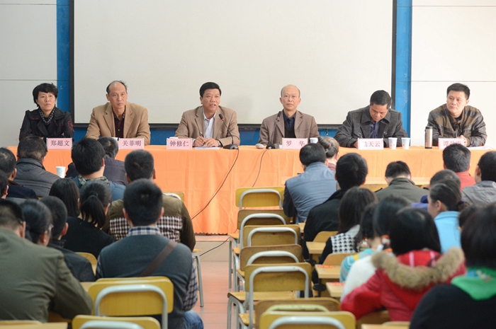 1月21日下午,我院在學院階梯教室隆(lóng)重(chóng)召開全體教職工大會(huì),院長(zhǎng)鍾(zhōng)修仁,院(yuàn)黨委書記羅(luó)華,副院長(zhǎng)陸天雲、關菲明,院長助理譚勁濤、鄭超文(wén)出席了大會,學院全體教職工參加了會議。大(dà)會由羅華書(shū)記(jì)主持。