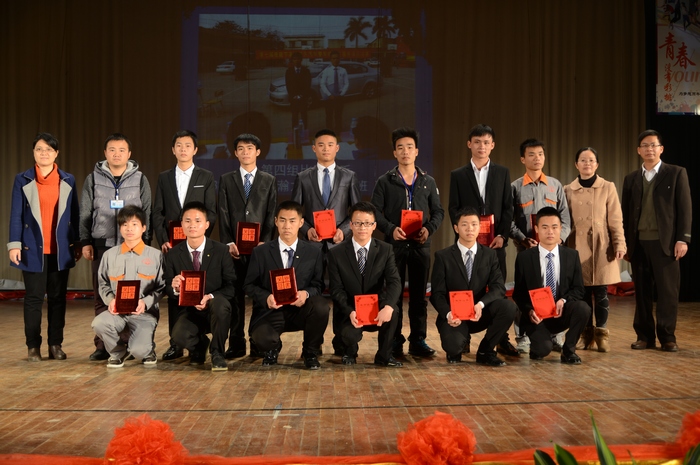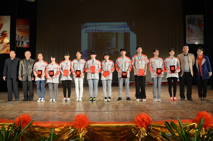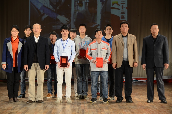 鍾修仁院長、羅(luó)華書記、韋軍新副主任、陸向華(huá)副主任為(wéi)汽車機修類比賽項目獲獎(jiǎng)選手頒獎
