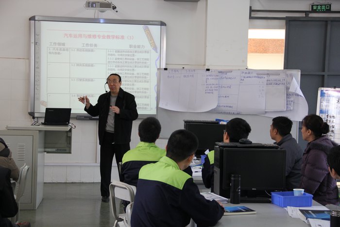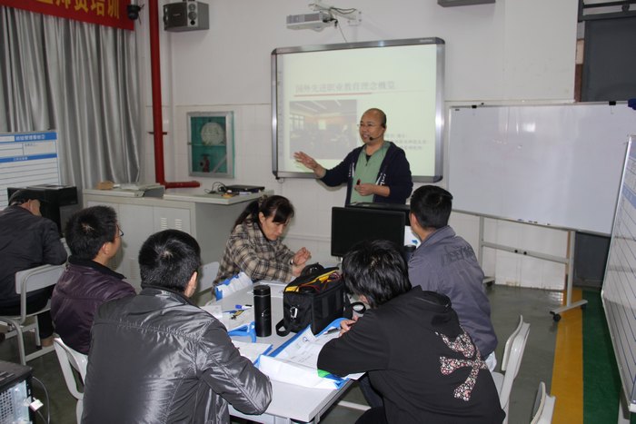 12月15日至21日,由我(wǒ)院和上海(hǎi)景格科技股份有(yǒu)限公司協辦,上海現代經濟管理進修學院承辦的2014年全國交通中等職業教育汽車專業骨幹教師“理實一體課程設計與教學實施”培訓(xùn)班(bān),在我院實訓大樓三樓汽車(chē)實訓中心舉辦。參(cān)加培訓的老師來自(zì)武漢市(shì)交通學校、牡丹江市職業教育中心學校、河源市高級(jí)技工學校、南寧(níng)職(zhí)業技術學院(yuàn)和廣西機電職業(yè)技術學院等21所職業院校。廣(guǎng)西交通技師學院關菲明副院長、上海現代經濟管理進修(xiū)學院施肇基校長出席了開班儀式,上海景格科技股份有限公司(sī)田(tián)野項(xiàng)目經(jīng)理主持本次開幕式,並就本次全國(guó)汽修專業(yè)骨幹教師培訓的目的、意義及相關事宜等情況向參訓學員(yuán)進行了簡明扼要的介紹。