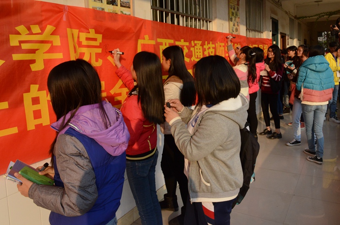 師生們紛紛在橫幅上(shàng)簽字留言