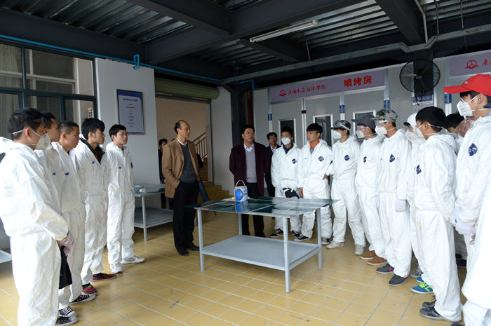鍾修仁院長和(hé)關菲明副院長到汽車塗(tú)裝技術項目現場鼓勵(lì)同學們認真比賽