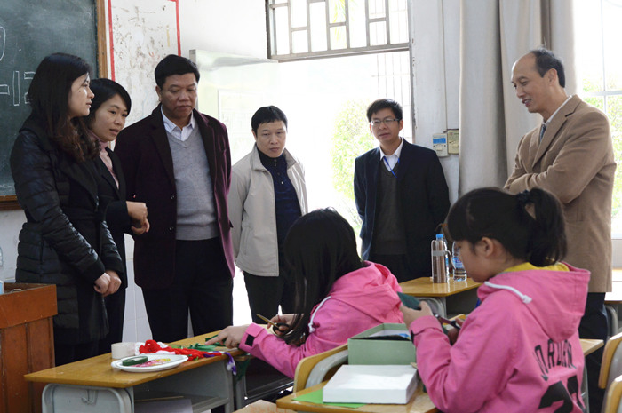 學院(yuàn)領導觀看手工藝品製作比賽現場