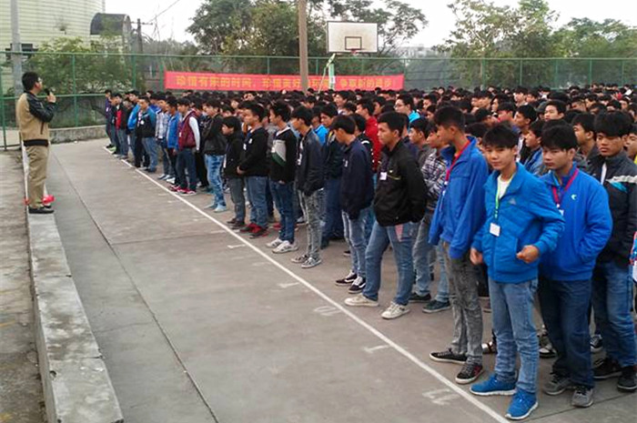 高(gāo)峰(fēng)教研處張亮(liàng)前副主任(rèn)在集會時(shí)號召學生投身技能節